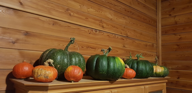 Das Hügelbeet ist abgeräumt, frisch gemistet und die dieses Jahr etwas spärliche Kürbis-Ernte unter den Helfern verteilt.