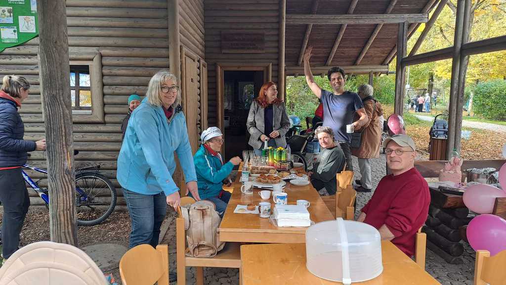 Die Sitzgruppe wurde geölt, das Kürbisbeet abgeernet und die Beute an die fleißigen Helfer verteilt. Am Ende gab es für alle eine zünftige Brotzeit.