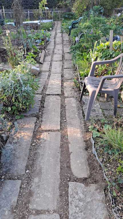 Die Wege und Seitenstreifen von Unkraut befreit, die ersten Kompostschichten verteilt.