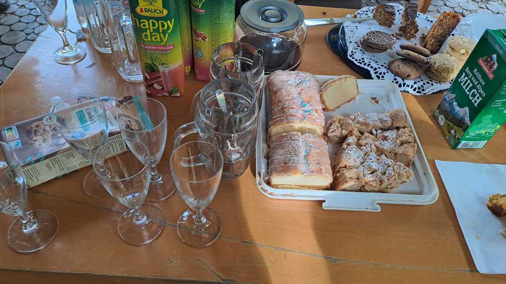 Zwischendurch wurden wir lecker versorgt durch eine zünftige Brotzeit und mitgebrachten Salaten und Kuchen.