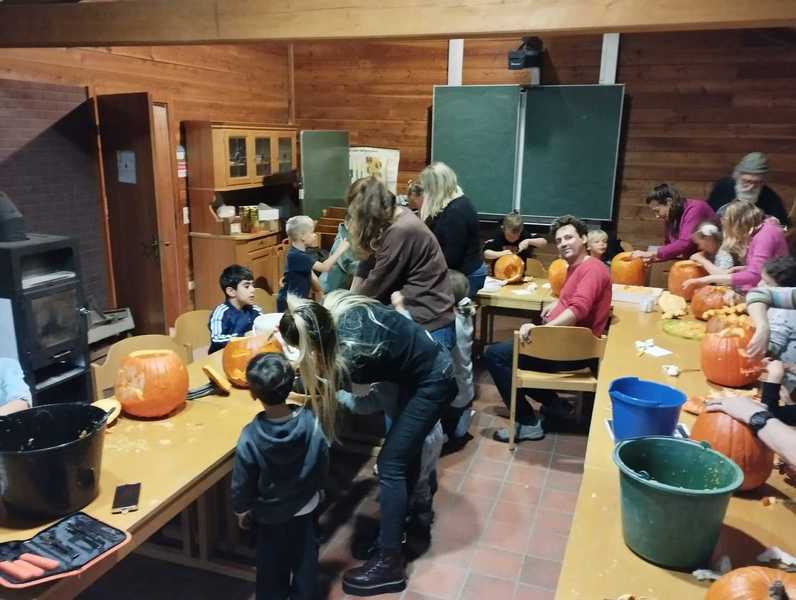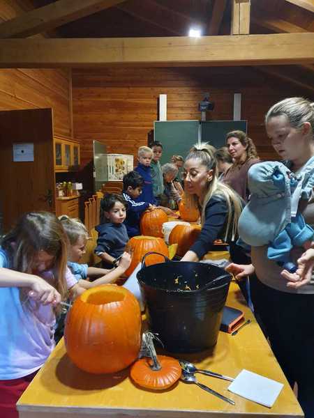 15 Kinder waren mit voller Begeisterung dabei die Kürbisse für Halloween vorzubereiten. Die anwesenden Eltern mussten kaum eingreifen, soviel Spaß hat es allen gemacht.