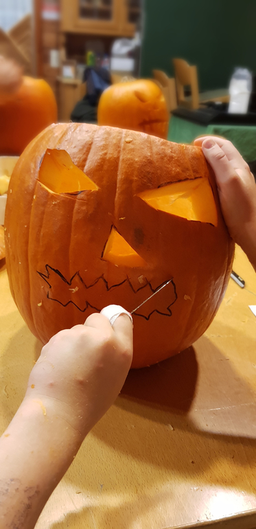 Am Donnerstag, dem 26. Oktober 2023 durften Grundschulkinder Kürbisse schnitzen