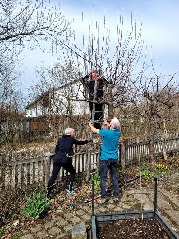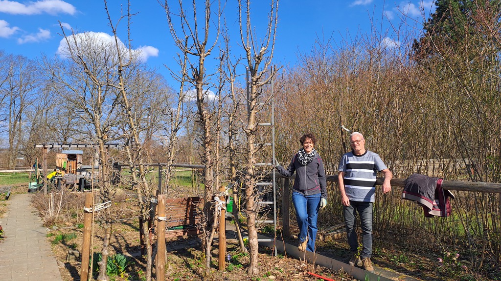 Die Spalierbäume sind wieder in Form, die Apfelbäume geschnitten