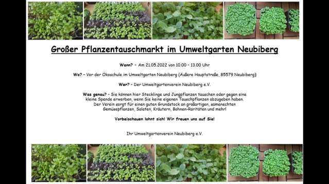 Die Aktion findet im Freien vor der Ökoschule im Umweltgarten Neubiberg statt. Eine Anmeldung ist nicht erforderlich.